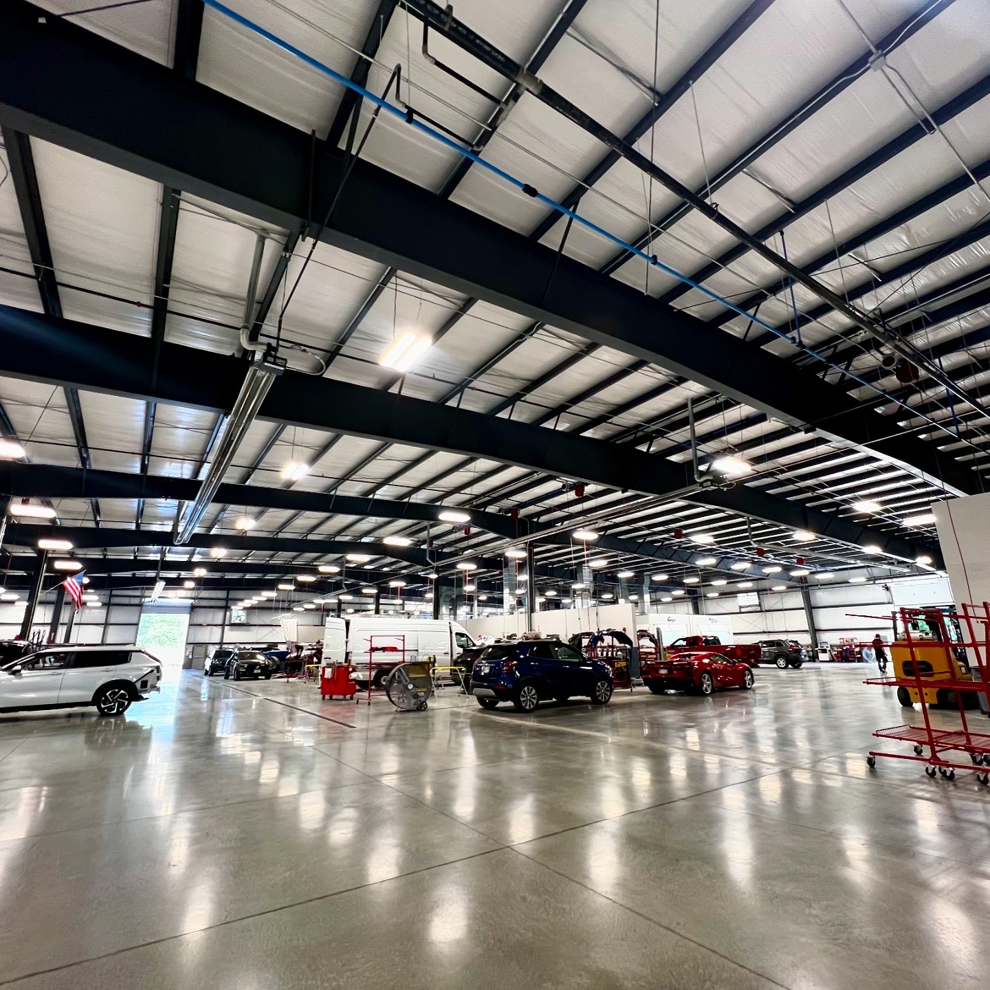 Brookpark Design Builders furnished and installed the Pre-Engineered Metal Building system for this state of the art collision center in Berea Ohio. The most unique feature of this project are the 200′ clear span frames required for specific areas of operation on the building’s interior. Building overall size is approximately 50,000 sq ft.
